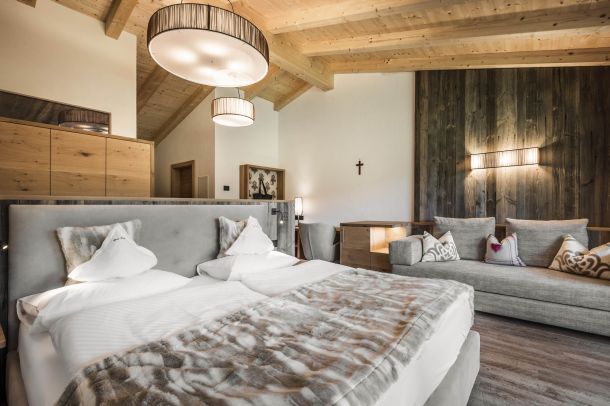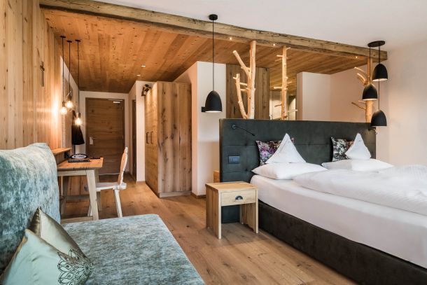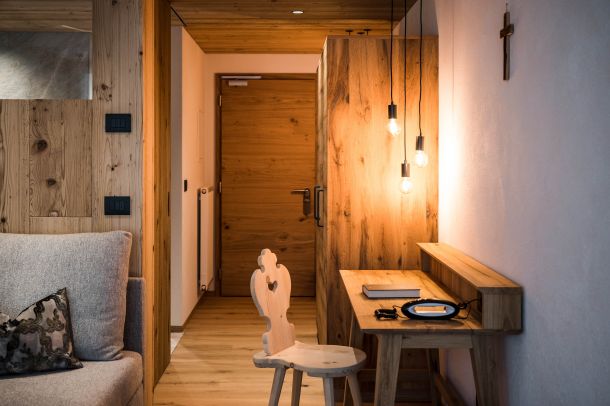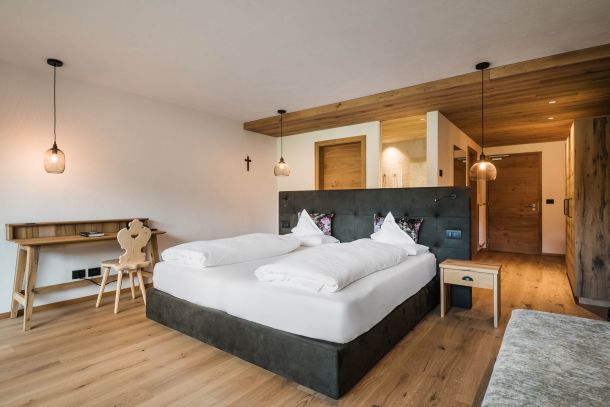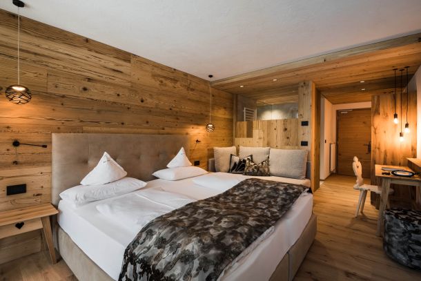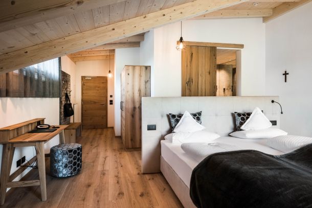 Camere confortevoli e materiali naturali della tradizione sudtirolese, rivisitati da design contemporaneo.