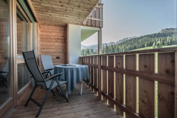 Grandi balconi e vetrate, godetevi i monti, prati e boschi dell’Alta Badia.