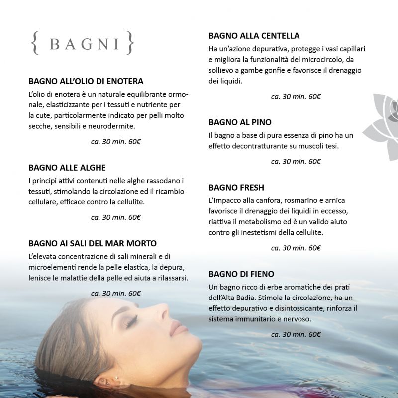Il calore della sauna finlandese, i benefici della sauna al fieno e del bagno turco, la zona relax e la piscina con idromassaggio con vista sulle Dolomiti è tutto pensato per il benessere e momenti di relax.